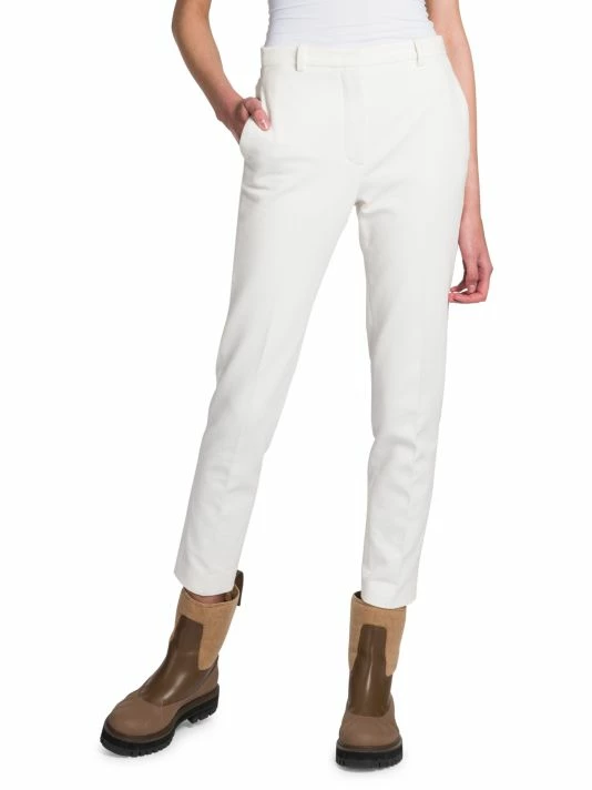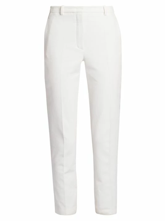 Pleated straight-leg trousers in an ankle crop silhouette.