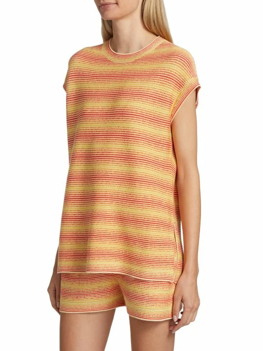 Synonymous with Italian luxury, family-run Loro Piana has been perfecting some of the finest cashmere and wool at its Piedmont-based mills since 1924. This oversized tunic top features a gradient stripe within a stripe pattern, framed by cap sleeves for a chic touch.