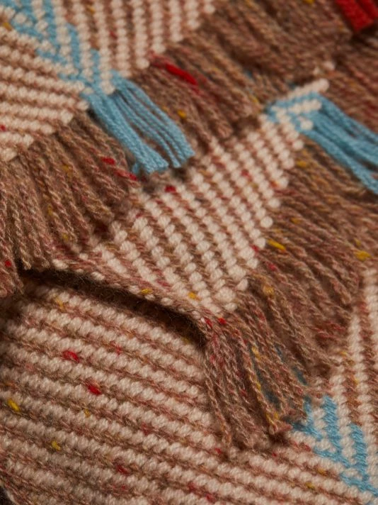 Synonymous with Italian luxury, family-run Loro Piana has been perfecting some of the finest cashmere and wool at its Piedmont-based mills since 1924. Italian made cashmere scarf flaunts a chevron pattern with multi-color stripes, finished with wispy frayed edges.