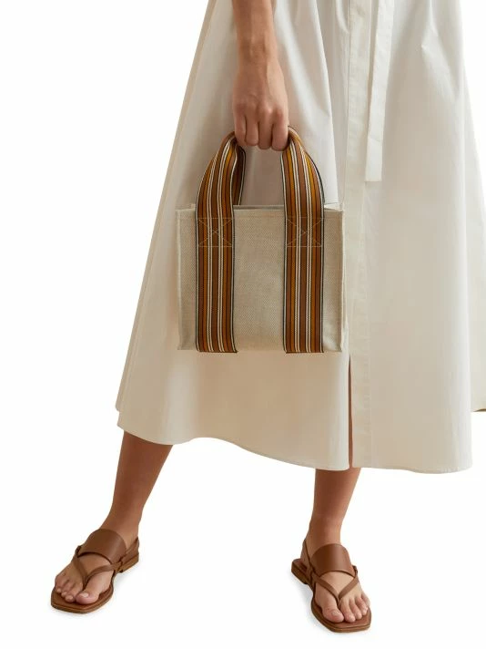 Synonymous with Italian luxury, family-run Loro Piana has been perfecting some of the finest cashmere and wool at its Piedmont-based mills since 1924. The multicolor stripe pattern is inspired by the canvas that covered the cases Loro Piana’s sales representatives used to take fabric swatches to clients, from the 1970s to the 1990s.